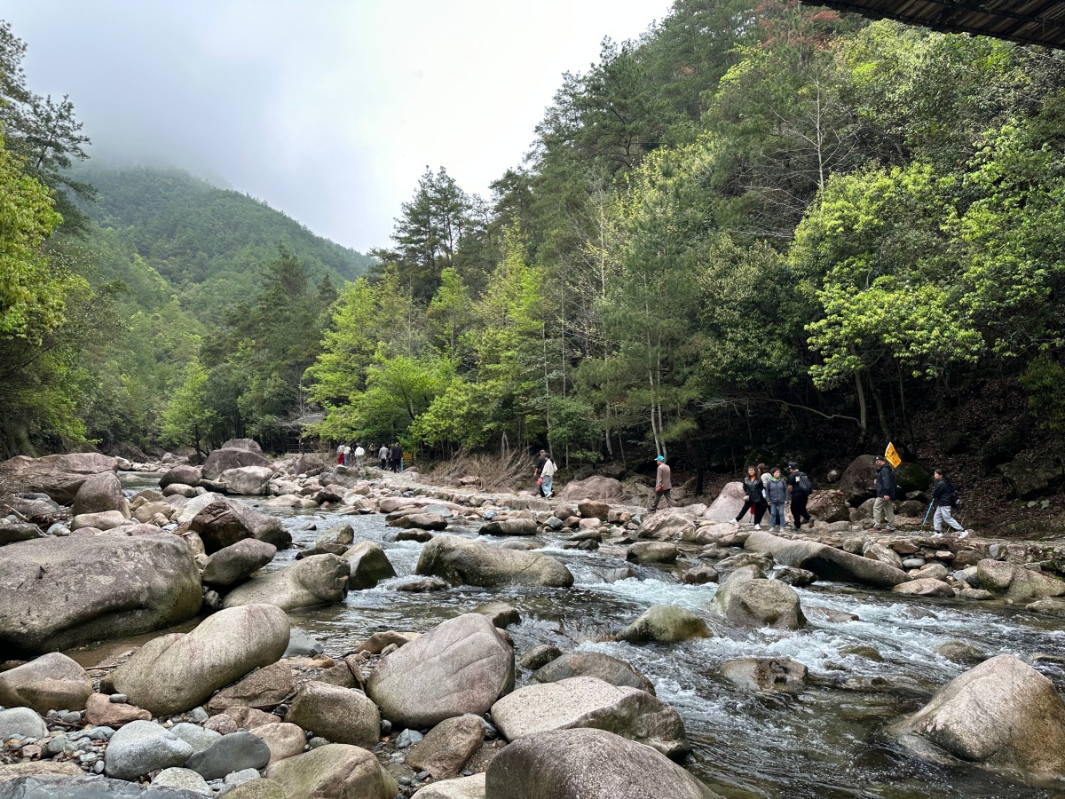 第二日,大家迎着晨光出发,抵达素有 “伟人谷” 之称的绩溪鄣山大峡谷。在皖南的青山秀水间,绩溪大峡谷如同被大自然私藏的世外桃源,静静卧于群山环抱之中。这里远离城市的喧嚣与浮躁,没有熙攘人群的打扰,只剩青山巍峨、碧水潺潺、林木葱茏,每一缕风都裹挟着草木的清香,每一寸土地都流淌着原生态的诗意,是无数人心中向往的疗愈之地、徒步天堂。